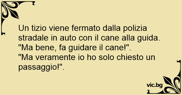 Катаджия спира кола управлявана от куче. Полицаят оглежда колата и забелязва седящ на задната седалка човек. - Господине, защо позволявате на кучето си да кара кола? - Но това не е моето куче. - припряно отговаря той - Аз се качих на автостоп!