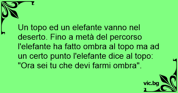 Un topo ed un elefante vanno nel deserto. Fino a metà del percorso l'elefante ha fatto ombra al topo ma ad un certo punto l'elefante dice al topo: