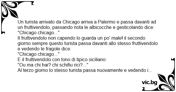 Un turista arrivato da Chicago arriva a Palermo e passa davanti ad un fruttivendolo, passando nota le albicocche e gesticolando dice: