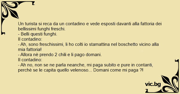 Un turista si reca da un contadino e vede esposti davanti alla fattoria dei bellissimi funghi freschi.