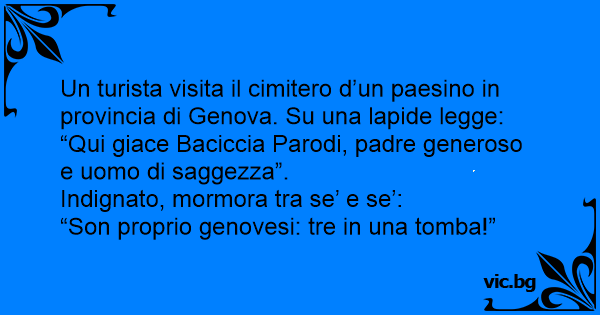 Un turista visita il cimitero d’un paesino in provincia di Genova. Su una lapide legge: