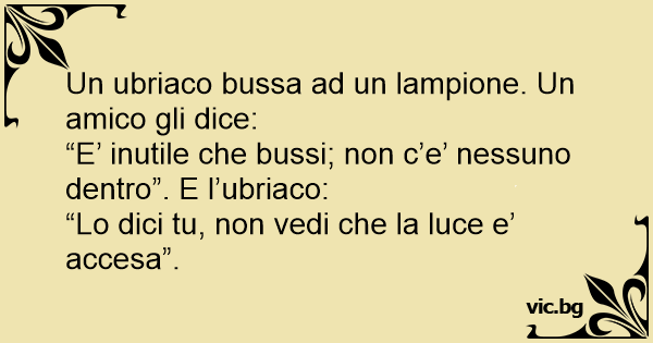 “E’ inutile che bussi; non c’e’ nessuno dentro”. E l’ubriaco: