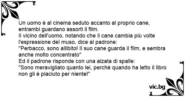 "Perbacco, sono allibito! Il suo cane guarda il film, e sembra anche molto concentrato"