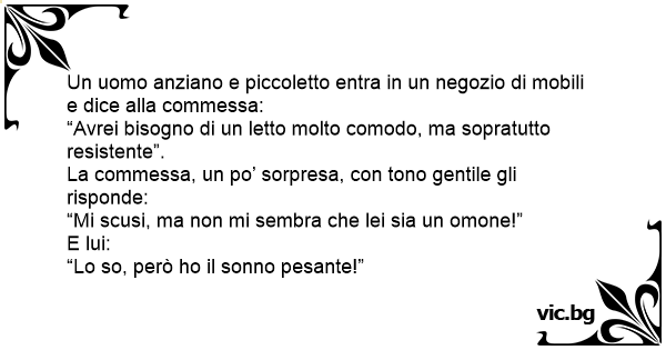 Un uomo anziano e piccoletto entra in un negozio di mobili e dice alla commessa: