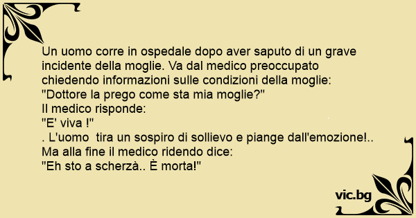 Un uomo corre in ospedale dopo aver saputo di un grave incidente della moglie. Va dal medico preoccupato chiedendo informazioni sulle condizioni della moglie: