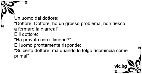 Dottore, dottore, sono 3 giorni che ho la diarrea, cosa posso fare? – Ha provato con il limone? – Si ma è troppo piccolo!!!