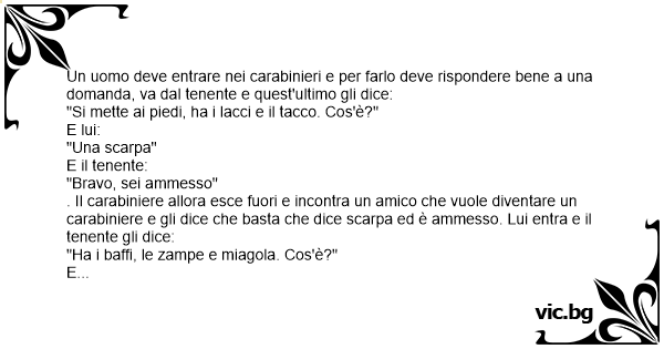 Un uomo deve entrare nei carabinieri e per farlo deve rispondere bene a una domanda, va dal tenente e quest'ultimo gli dice:
