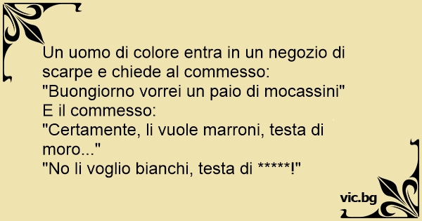 Un uomo di colore entra in un negozio di scarpe e chiede al commesso: