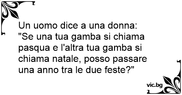 "Se una tua gamba si chiama pasqua e l'altra tua gamba si chiama natale, posso passare una anno tra le due feste?"