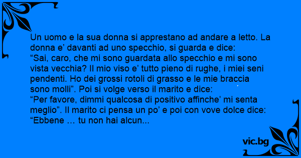 “Per favore, dimmi qualcosa di positivo affinche’ mi senta meglio”. Il marito ci pensa un po’ e poi соn vove dolce dice: