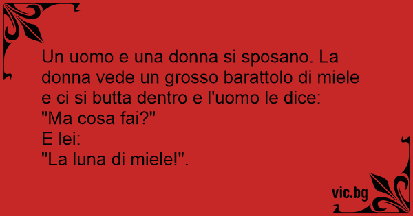 Un uomo e una donna si sposano. La donna vede un grosso barattolo di miele e ci si butta dentro e l'uomo le dice: