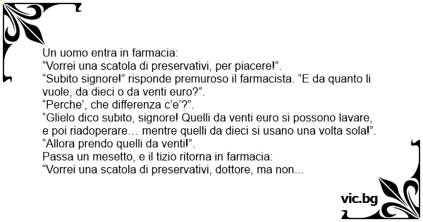 “Subito signore!” risponde premuroso il farmacista. “E da quanto li vuole, da dieci o da venti euro?”.