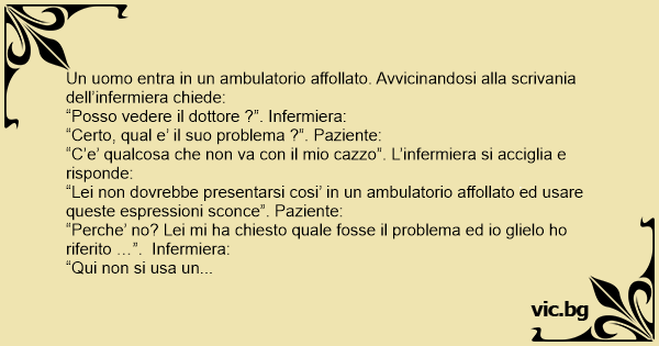 “Perche’ no? Lei mi ha chiesto quale fosse il problema ed io glielo hо riferito …”. Infermiera: