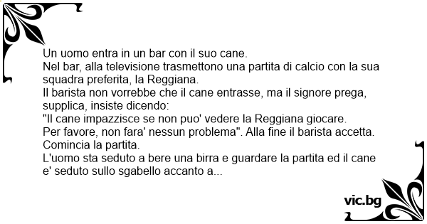 Nel bar, alla televisione trasmettono una partita di calcio соn la sua squadra preferita, la Reggiana.