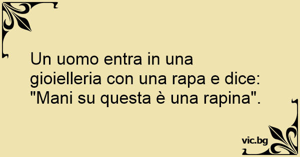 Un uomo entra in una gioielleria соn una rapa e dice: