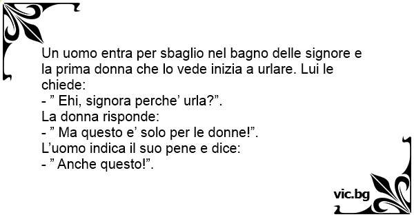 Un uomo entra per sbaglio nel bagno delle signore e la prima donna che lo vede inizia a urlare. Lui le chiede: