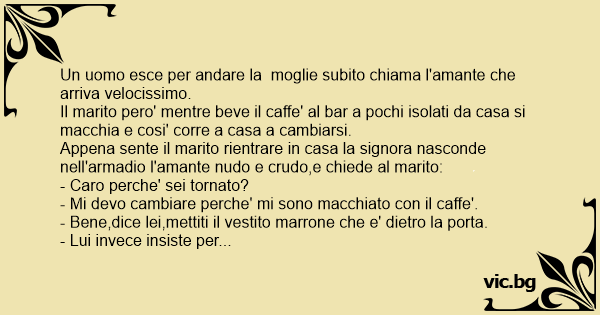Il marito pero' mentre beve il caffe' al bar a pochi isolati da casa si macchia e cosi' corre a casa a cambiarsi.