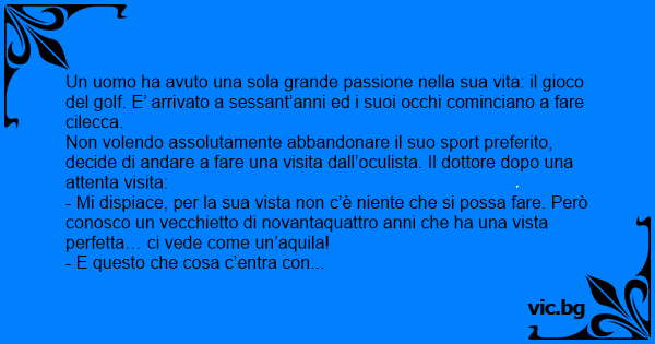 - Mi dispiace, per la sua vista non c’è niente che si possa fare. Però conosco un vecchietto di novantaquattro anni che ha una vista perfetta… ci vede come un’aquila!