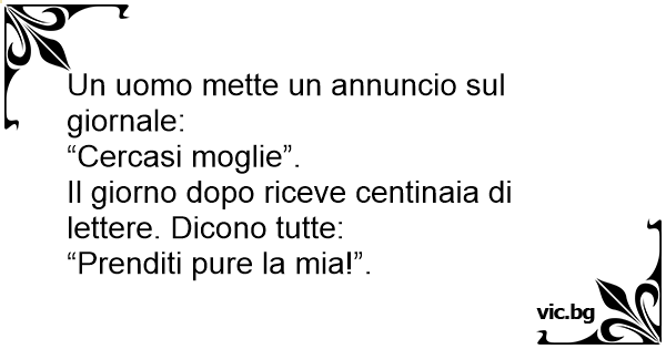 Un tipo publica un aviso en el periódico diciendo: "Busco Esposa". Al otro día recibe cientos de cartas, pero todas ellas de hombres y con el mismo mensaje: "Le regalo la mía"