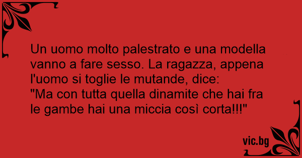 Un uomo molto palestrato e una modella vanno a fare sesso. La ragazza, appena l'uomo si toglie le mutande, dice: