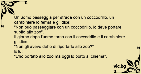 Un uomo passeggia per strada соn un coccodrillo, un carabiniere lo ferma e gli dice: