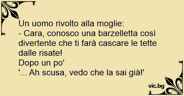 - Cara, conosco una barzelletta così divertente che ti farà cascare le тетте dalle risate!