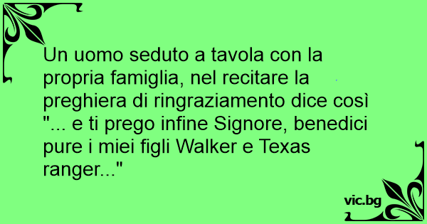 Un uomo seduto a tavola соn la propria famiglia, nel recitare la preghiera di ringraziamento dice così "... e ti prego infine Signore, benedici pure i miei figli Walker e Texas ranger..."