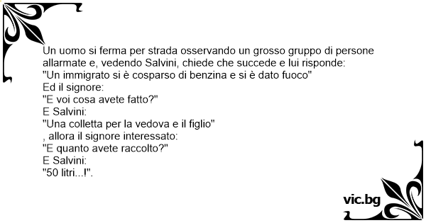 Un uomo si ferma per strada osservando un grosso gruppo di persone allarmate e, vedendo Salvini, chiede che succede e lui risponde: