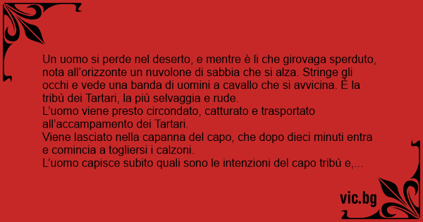 Un uomo si perde nel deserto, e mentre è li che girovaga sperduto, nota all’orizzonte un nuvolone di sabbia che si alza. Stringe gli occhi e vede una banda di uomini a cavallo che si avvicina. È la tribù dei Tartari, la più selvaggia e rude.