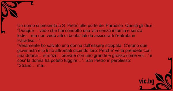 Un uomo si presenta a S. Pietro alle porte del Paradiso. Questi gli dice: