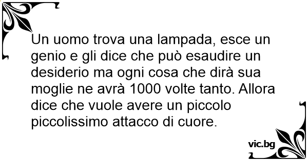 Una señora con diez años de matrimonio ve una lámpara vieja de su marido. La frota por casualidad y sale un genio. El genio le dice: - Te concederé 3 deseos, pero cualquier cosa que me pidas, a tu...