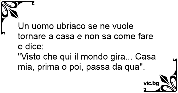 Un uomo ubriaco se ne vuole tornare a casa e non sa come fare e dice: