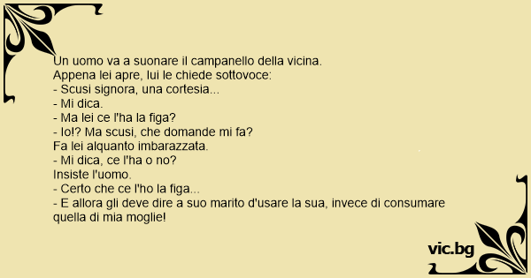 - E allora gli deve dire a suo marito d'usare la sua, invece di consumare quella di mia moglie!