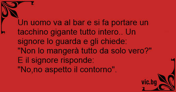 Un uomo va al bar e si fa portare un tacchino gigante tutto intero.. Un signore lo guarda e gli chiede: