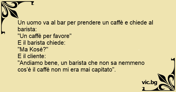 Un uomo va al bar per prendere un caffè e chiede al barista:
