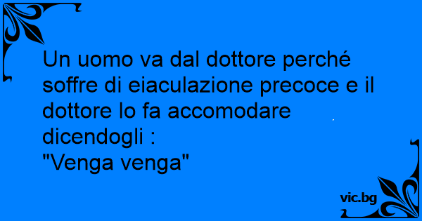 Un uomo va dal dottore perché soffre di eiaculazione precoce e il dottore lo fa accomodare dicendogli :