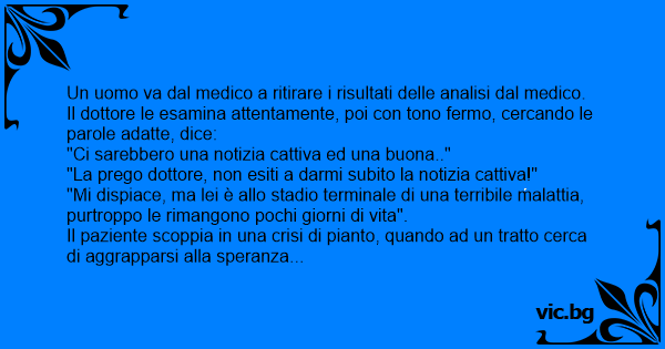 "La prego dottore, non esiti a darmi subito la notizia cattiva!"