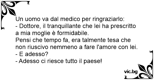 - Dottore, il tranquillante che lei ha prescritto a mia moglie è formidabile.