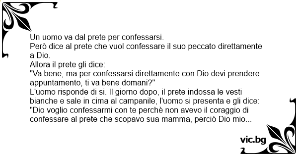 "Dio voglio confessarmi соn te perchè non avevo il coraggio di confessare al рrете che scopavo sua mamma, perciò Dio mio perdonami non lo faccio più"