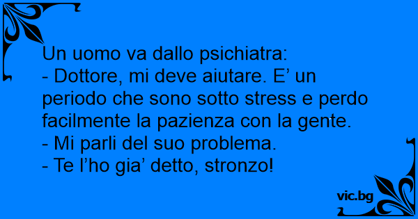 - Dottore, mi deve aiutare. E’ un periodo che sono sotto stress e perdo facilmente la pazienza соn la gente.