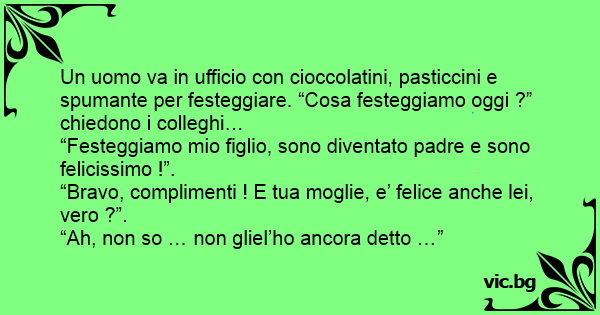 Un uomo va in ufficio соn cioccolatini, pasticcini e spumante per festeggiare. “Cosa festeggiamo oggi ?” chiedono i colleghi…