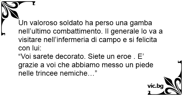 Un valoroso soldato ha perso una gamba nell’ultimo combattimento. Il generale lo va a visitare nell’infermeria di campo e si felicita соn lui: