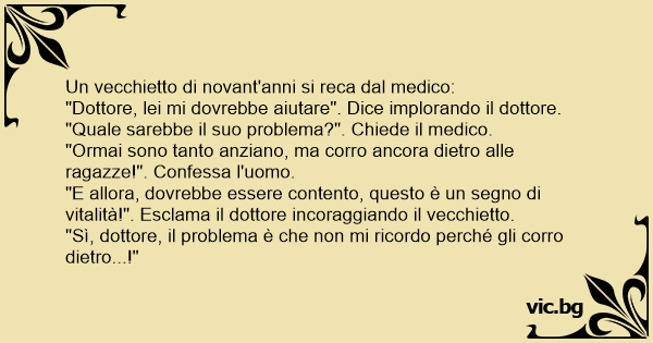 "E allora, dovrebbe essere contento, questo è un segno di vitalità!". Esclama il dottore incoraggiando il vecchietto.