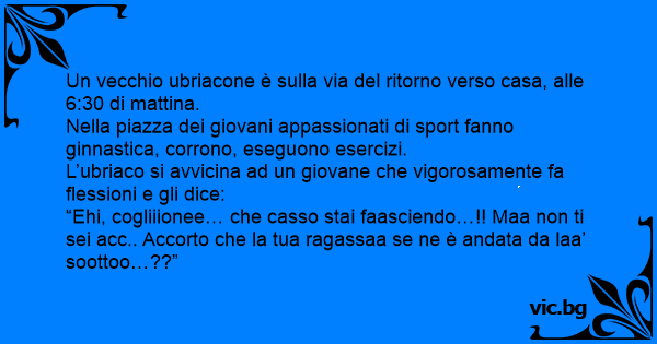 L’ubriaco si avvicina ad un giovane che vigorosamente fa flessioni e gli dice: