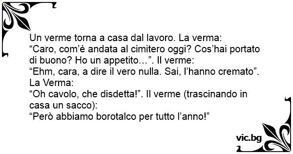 “Caro, com’è andata al cimitero oggi? Cos’hai portato di buono? Но un appetito…”. Il verme: