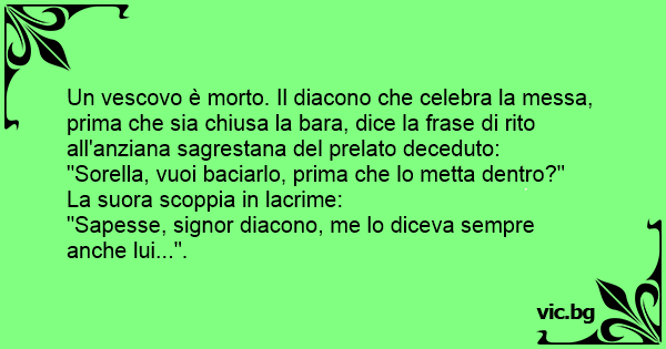 Un vescovo è morto. Il diacono che celebra la messa, prima che sia chiusa la bara, dice la frase di rito all'anziana sagrestana del prelato deceduto: