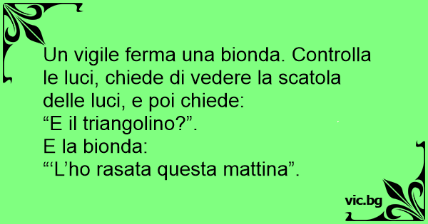 Un vigile ferma una bionda. Controlla le luci, chiede di vedere la scatola delle luci, e poi chiede: