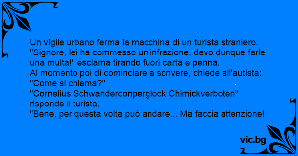 "Signore, lei ha commesso un'infrazione, devo dunque farle una multa!" esclama tirando fuori carta e penna.