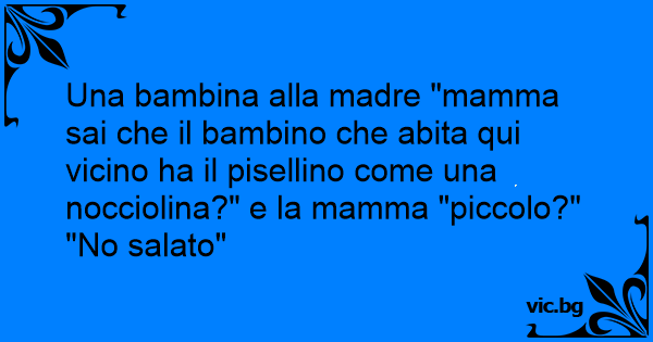 Una bambina alla madre "mamma sai che il bambino che abita qui vicino ha il pisellino come una nocciolina?" e la mamma "piccolo?"