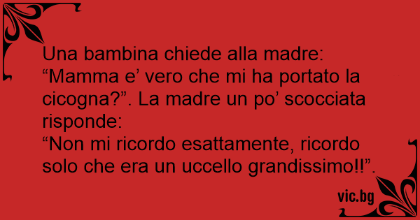 “Mamma e’ vero che mi ha portato la cicogna?”. La madre un po’ scocciata risponde: